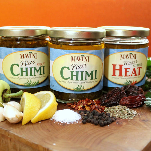 Authentic Argentinian Chimichurri Sauce with habanero. Maxi's Heat - wowza! My original chimichurri sauce turned WAY UP with a habanero pepper and some crushed red pepper. You like it hot - this is your sauce.